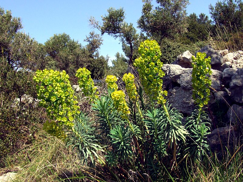 Paliaden - Wolfsmilch blüht hier fast überall und teilweise in Massen. Ich konnte der Versuchung nicht widerstehen, sie immer wieder in meine Bilder einzubeziehen