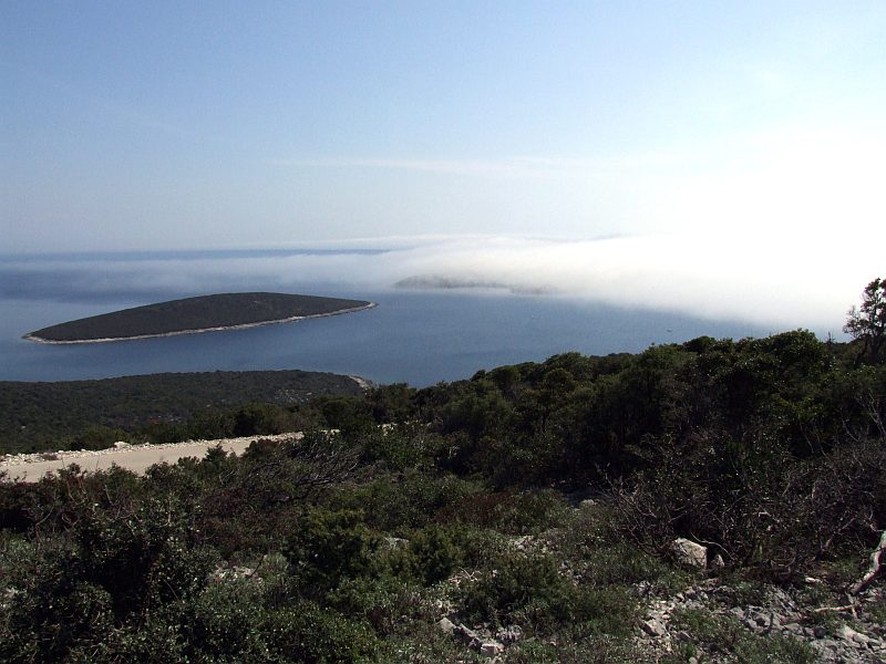 Schon weitet sich der Blick über Mali Losinj, und jetzt wird der Nebel sichtbar.