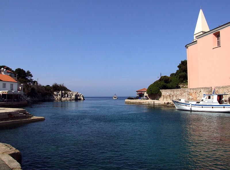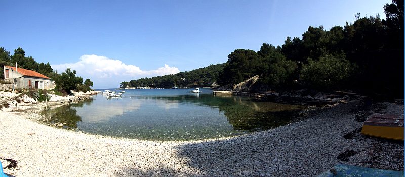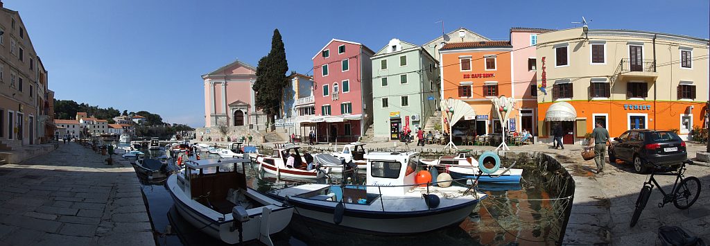 Ich fahre nun hinunter nach Mali Losinj, von wo ich einen Abstecher nach Veli Losinj mache - hier der kleine Hafen im Panoramabild.