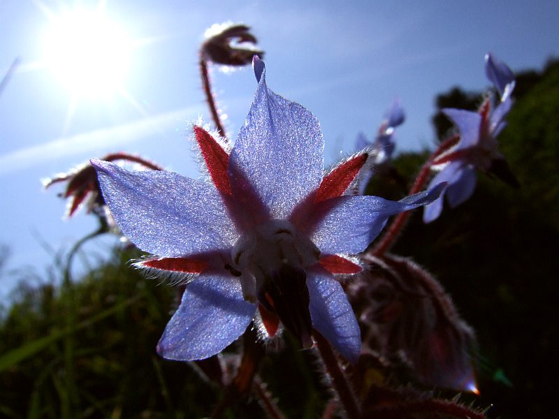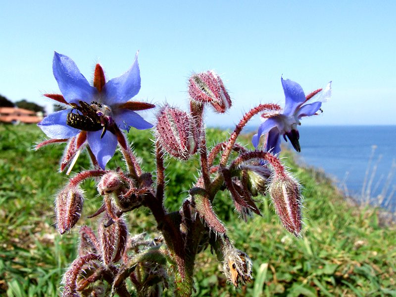 Boretsch (Borago officinalis) wächst hier neben der Straße.