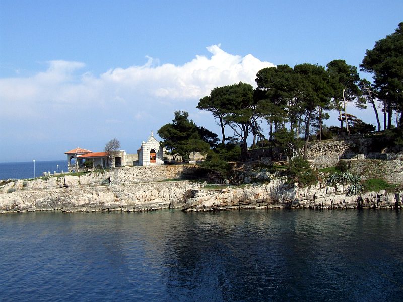 Ich habe mir ein Moutainbike geliehen, weil ich mit der Dachmontage meines eigenen leider ein unlösbares Problem hatte. Jetzt fahre ich zunächst zum Hotel zurück, welches in der malerischen Bucht Cikat gelegen ist. Von unterwegs der Blick auf Mali Losinj.