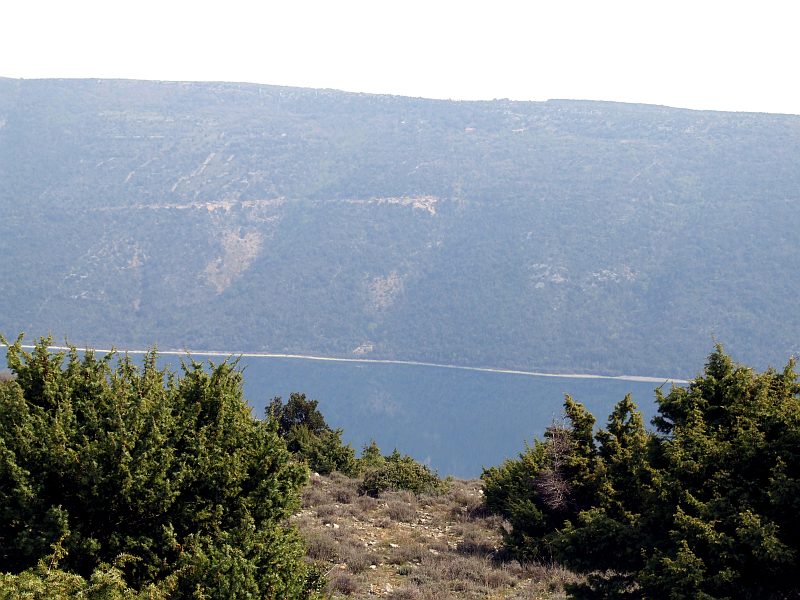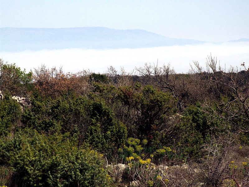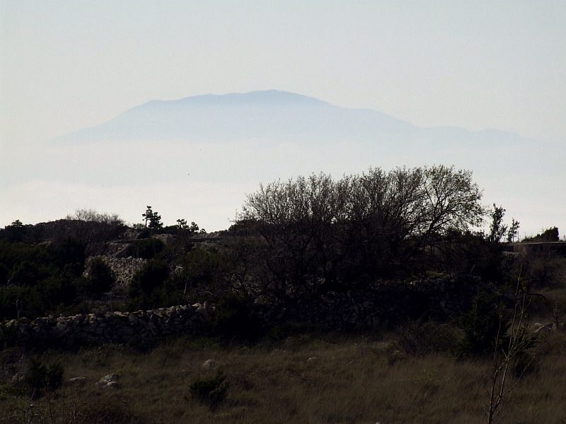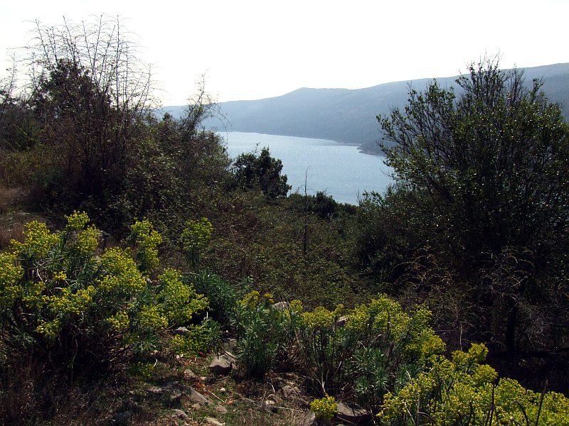 Heute liegt dichter Nebel über Mali Losinj. Ich fahre zunächst mit dem Auto bis auf die Insel Cres bis zur Abzweigung nach Stivan. Hier stelle ich das Auto ab und besteige das Mountainbike. Ich fahre auf einer schmalen Straße bis zu dem winzigen Dorf Grmov und anschließend auf einem Fahrweg bis fast nach Podol. Hier zweige ich links ab nach Lubenice, dann wieder zurück bis knapp vor Valun und auf Fahrweg und schließlich recht wilder Piste hoch oberhalb des Vransko - Sees bis nach Zbisina und über Vrana wieder zurück zum Auto.