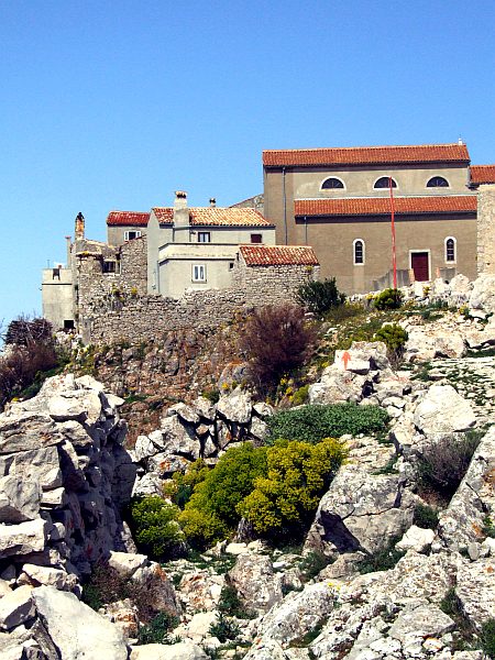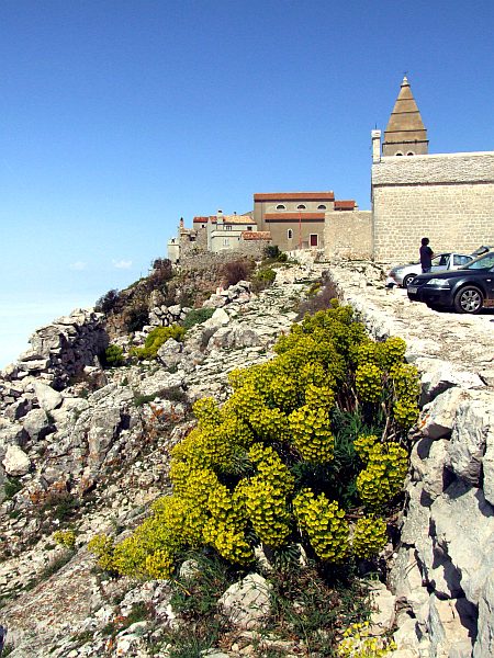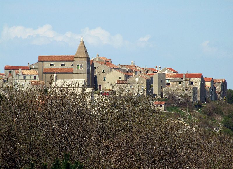 Lubenice liegt am Rand eines kleinen Hochplateaus, direkt bei Steilhängen und Felsabstürzen zur Westküste hinunter.