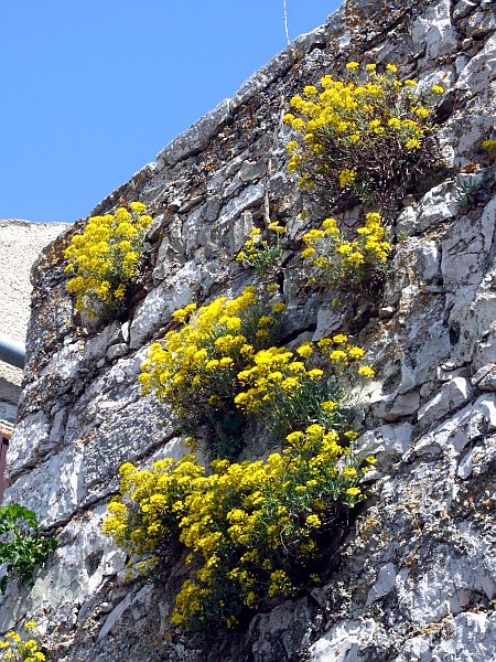 Überall wächst hier das Felsen - Steinkraut (Alyssoides sinuata)
