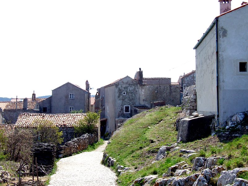 Lubenice hat nur wenige, aber dicht zusammengedrängt stehende Häuser, nach wenigen Schritten ist man am anderen Ende.
