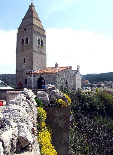 Die Kirche von Lubenice mit einem etwas überdimensionalen Turm.