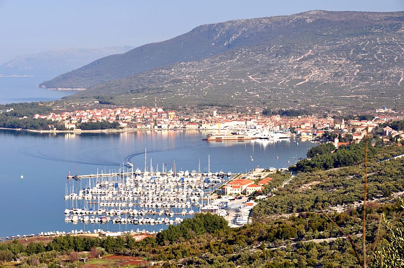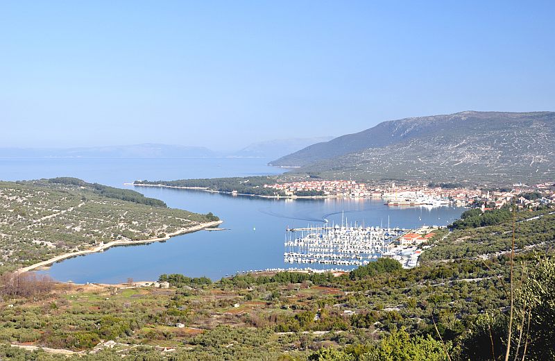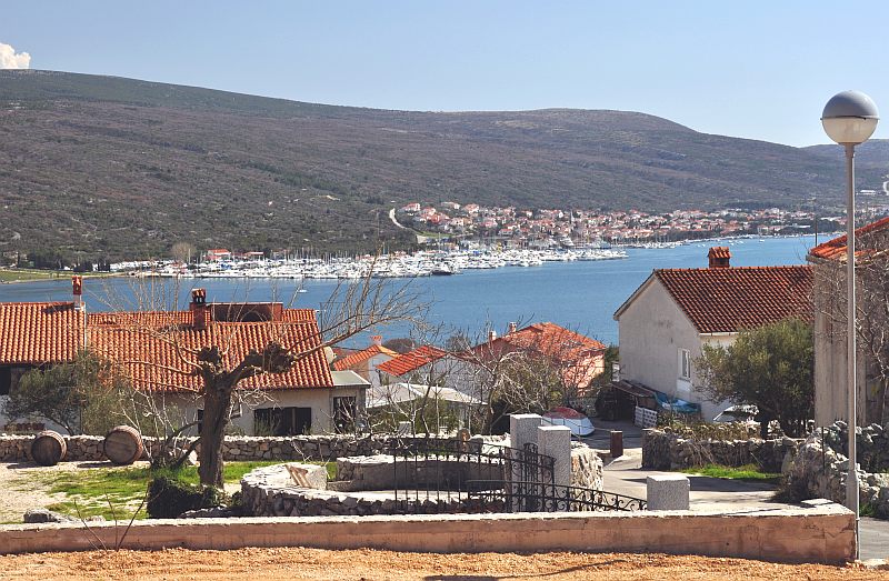 Toller Blick von hier nach Norden, über den Hafenort Malinska bis zum Festland.