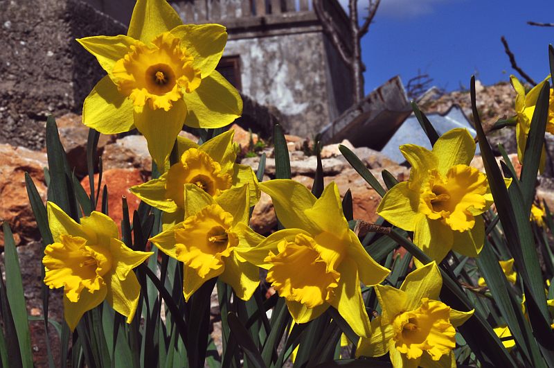 In einem der Hausgärten die herrlichsten Gelben Narzissen (Narcissus pseudonarcissus).