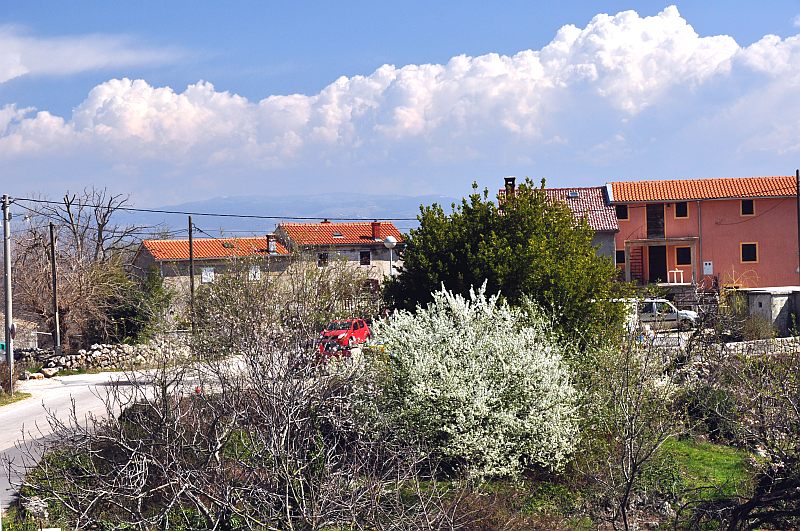 In Vrh. Über dem Festland bauen sich nun beeindruckende Wolkengebirge auf, die aber dort bleiben und nicht herüberziehen.