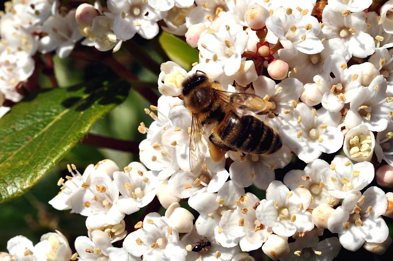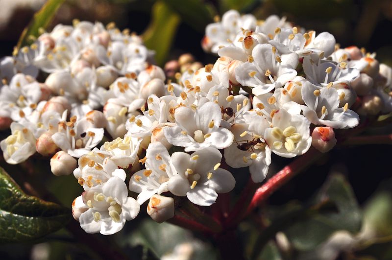 Mittelmeer - Schneeball (Lorbeer - Schneeball, Steinlorbeer, Viburnum tinus) in voller Blüte.