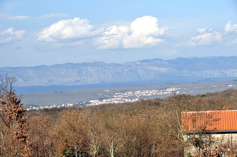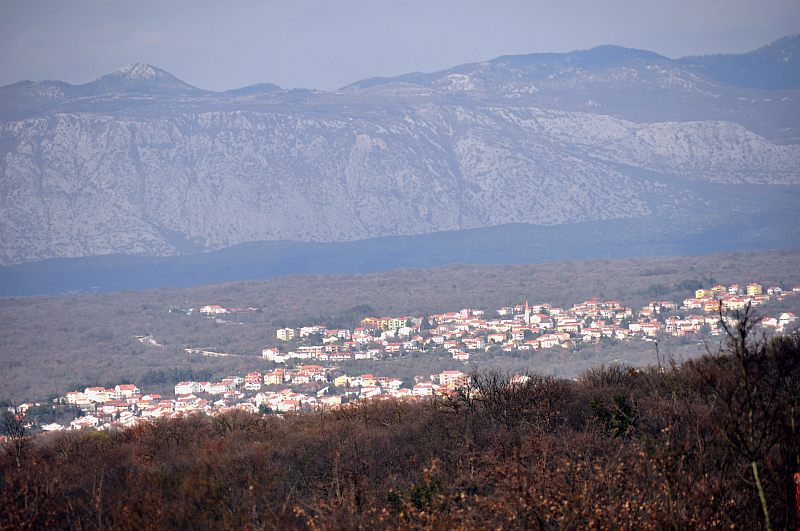 Zoom auf Malinska und die Berge des Festlands. Die Meerenge zwischen Krk und dem Festland ist von hier aus nicht sichtbar.