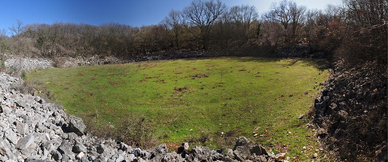 Typische, mit Sediment gefüllte Doline im Karst, als Weidefläche genutzt.