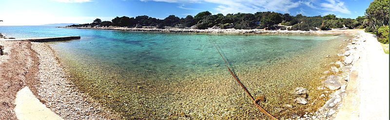 Die Bucht von Ui östlich von Punta Kriza. Ich fahre nun von hier aus auf einer Sandstraße zur östlichsten Landzunge dieses Teils von Cres.