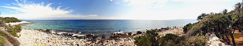 Panoramablick übers Meer von der Südspitze der Insel Cres. Hierher oder ins Bild klicken für eine größere Darstellung.