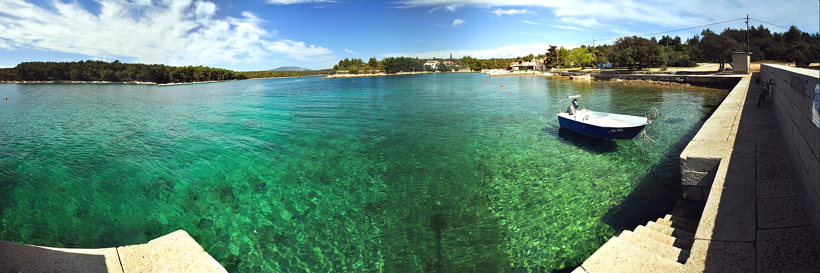 Panoramabild des kleinen Jachthafens bei Punta Kriza.