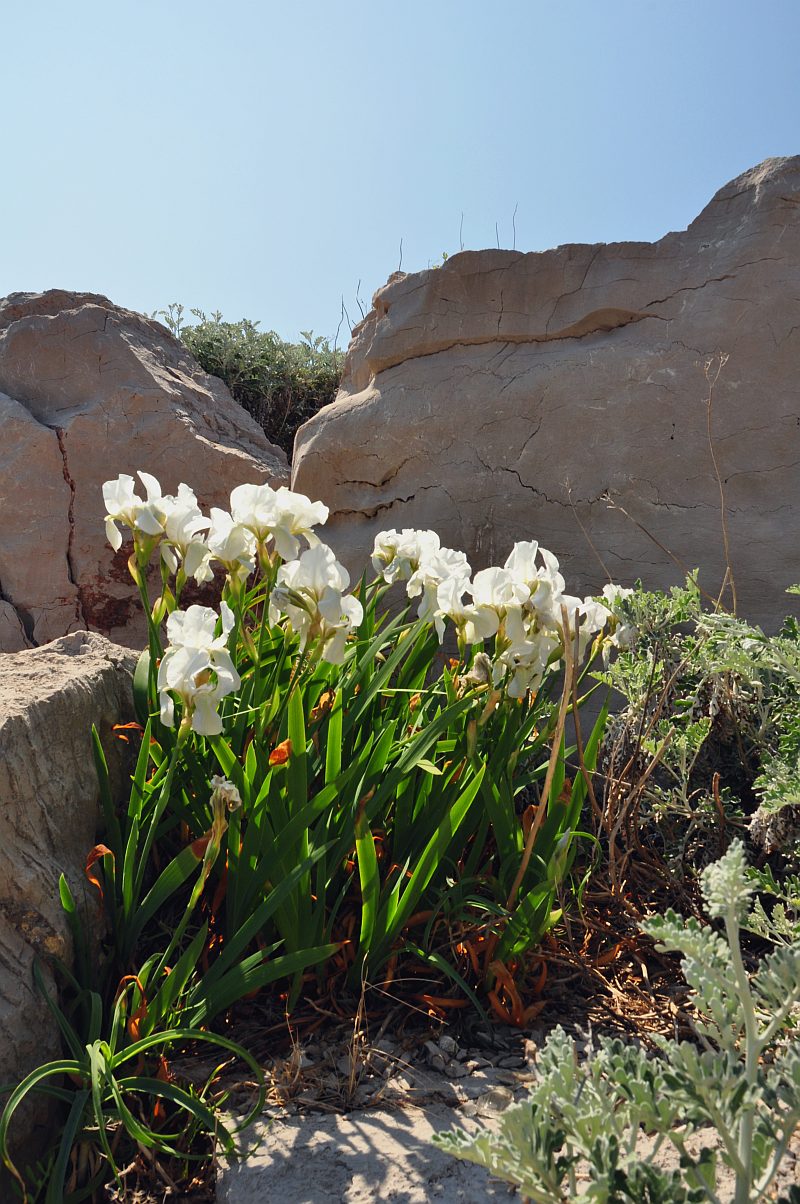 Verwilderte weisse Garten - Schwertlilien bei der ...