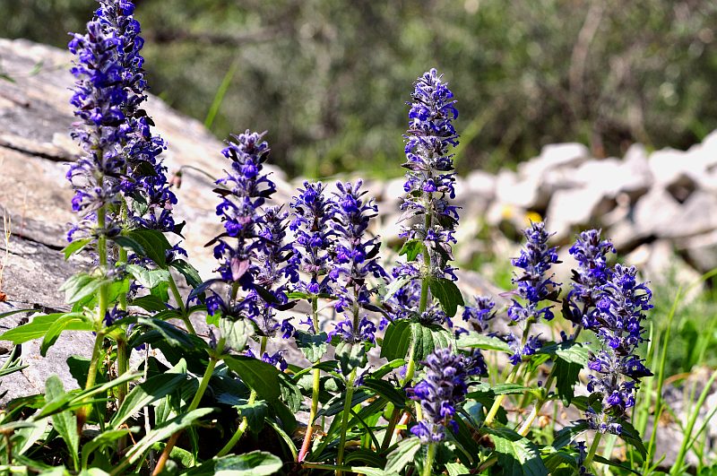 Am Rückweg, in einem Olivern - Garten neben der Straße: Heide - Günsel (Genfer Günsel, Ajuga genevensis)