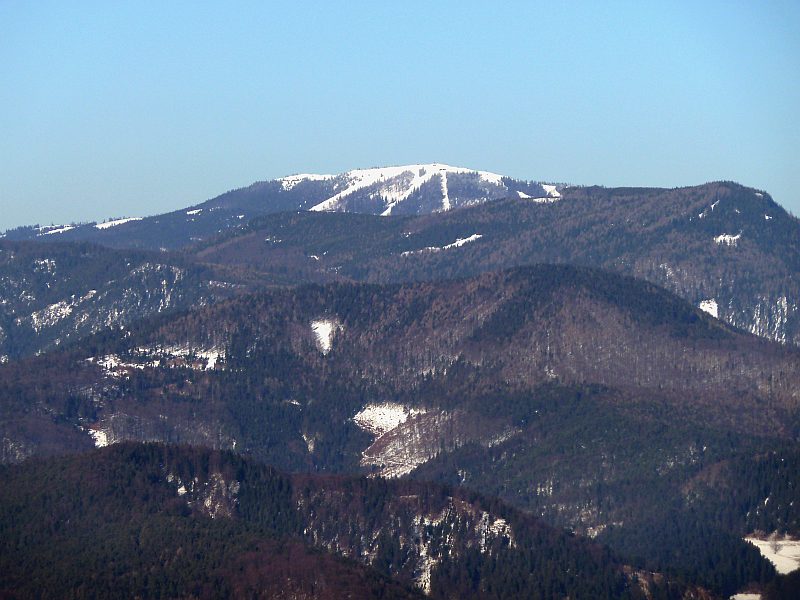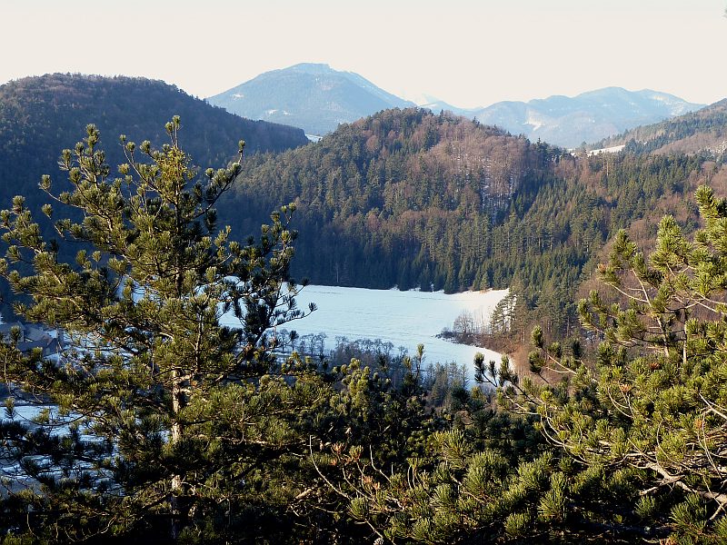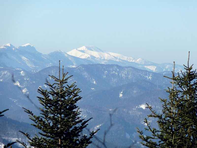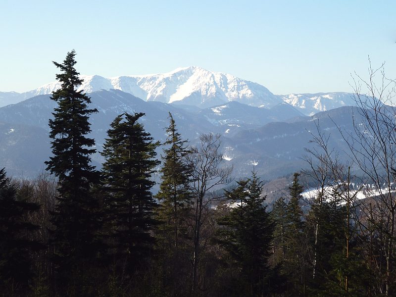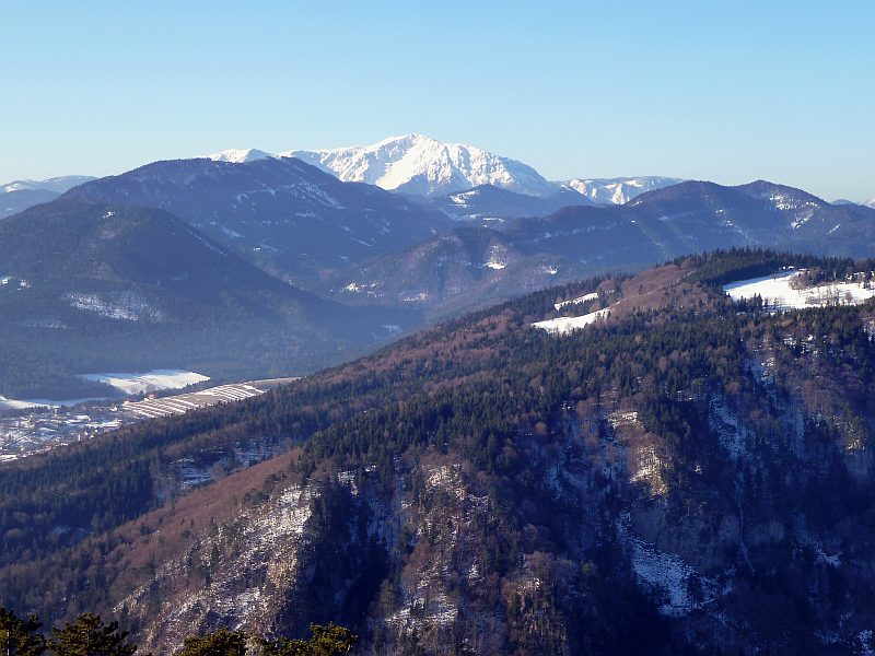 On top of the Sueszwaende (a rocky escarpment), there is a beautiful view over the Gutenstein Alps. Click here or into the picture for a larger version.