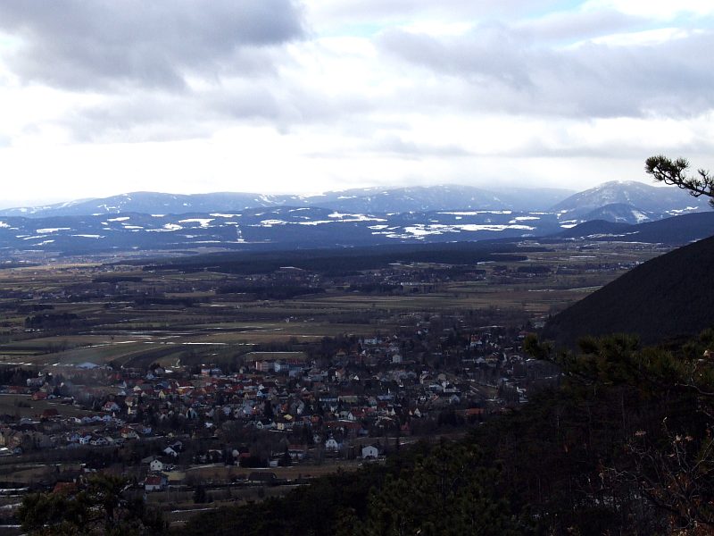 Winzendorf mit Wechsel und Semmering im Hintergrund
