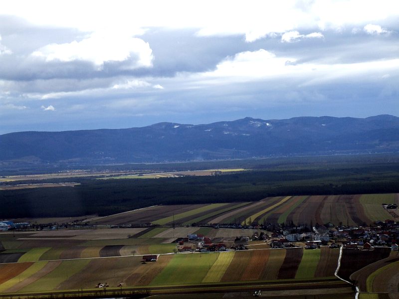 Das Steinfeld mit dem Rosaliengebirge dahinter, im Vordergrund Weikersdorf.