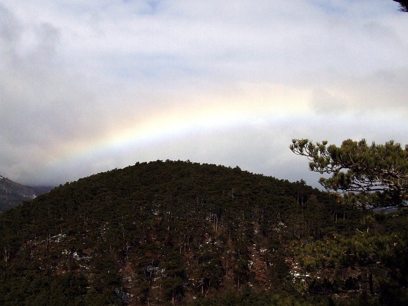 Beim Aussichtspunkt oberhalb des Steinbruchs - "Neue Welt - Blick": Ein etwas schwacher, aber doch gut sichtbarer Regenbogen über dem Piestingtal.