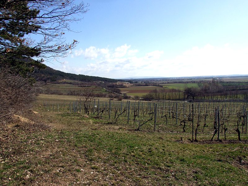 Ich wandere zunächst ein Stück durch die Weingärten Richtung Bad Fischau, um dann gleich bei erster Gelegenheit dem Hinweisschild zum Marmorsteinbruch zu folgen, welches mich zunächst zwischen Weingärten zum Waldrand weist.