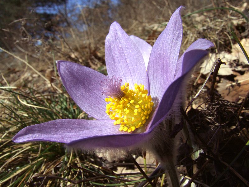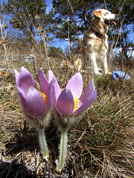 Im Gegensatz zum Wetterbericht ist es heute morgen zwar windig und kalt, aber strahlend sonnig. Das wird aber wohl nicht lang so bleiben, und so verschiebe ich meinen geplanten Rasttag auf morgen und wandere, warm gekleidet, vom oberen Ortsrand Winzendorfs los. Ich habe mir heute vorgenommen, noch an ein paar weiteren Plätzen nach Kuhschellen Ausschau zu halten.