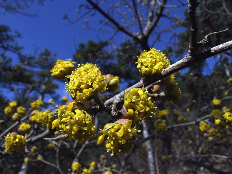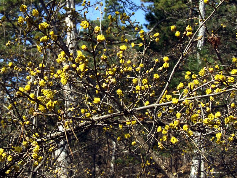 Die Dirndlsträucher beginnen erst zaghaft ...