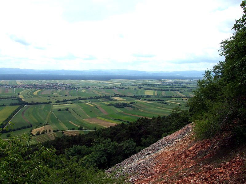 View over the scree of the quarry to the plain (Steinfeld - "stone field) to the hillside named "Bucklige Welt".