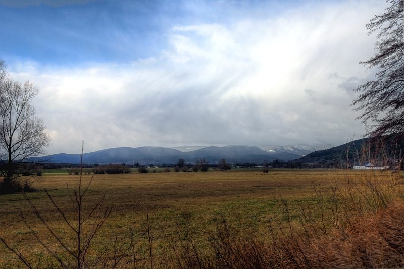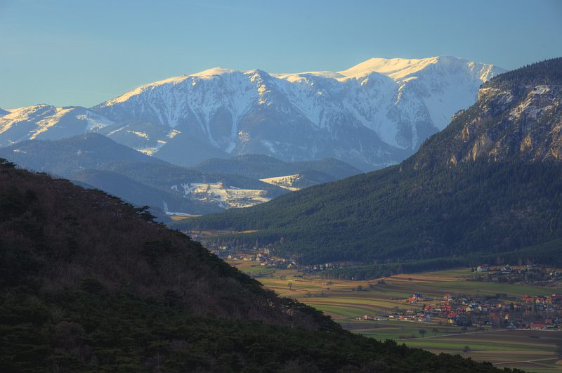 12.1.: Heute ist es deutlich ruhiger, wenn auch noch nicht wolkenlos. Blick über Winzendorf zum Wechsel