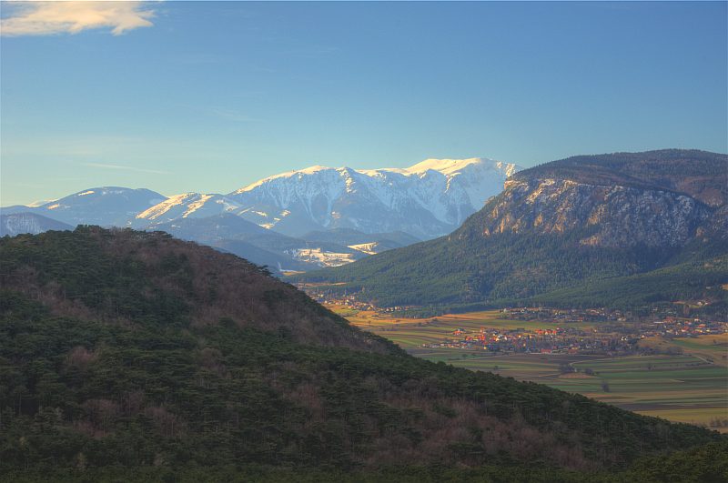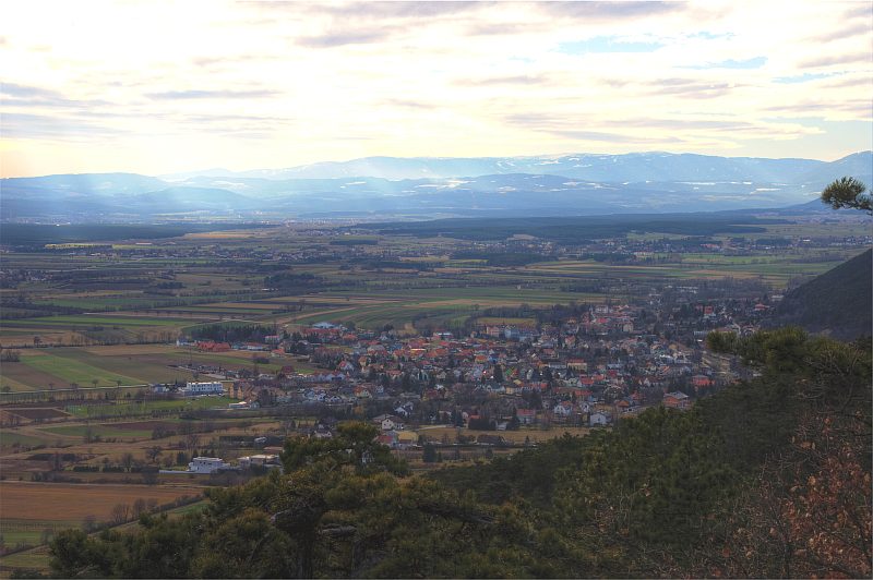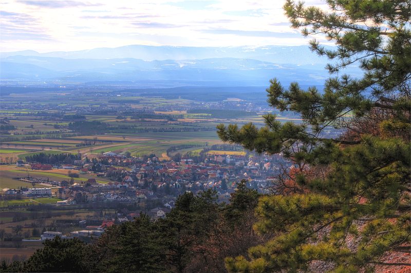 Blick Richtung Wiener Neustadt und das Leithagebirge