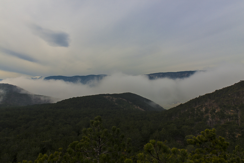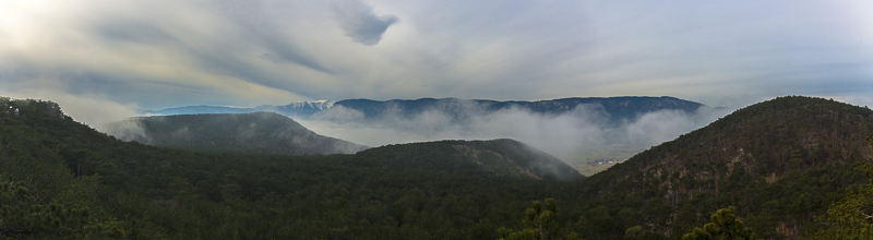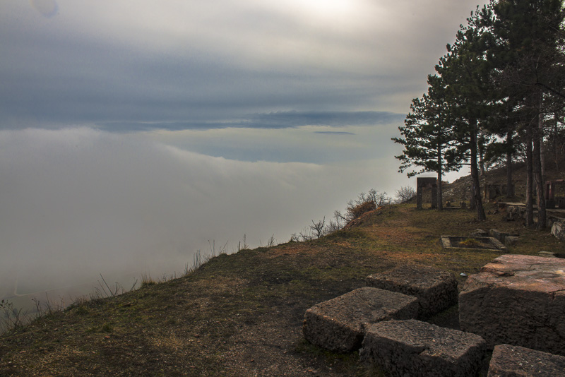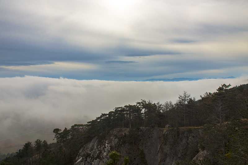 View over the marble quarry. Winzendorf hidden by the mist, but the summits of the Wechsel can be seen on the horizon.