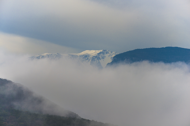 Dense ground fog covers Winzendorf. Looking at the Schneeberg Webcam I see, that the Fischau mountains are out, however. A short walk to Muthmannsdorf´s marble quarry at noon.