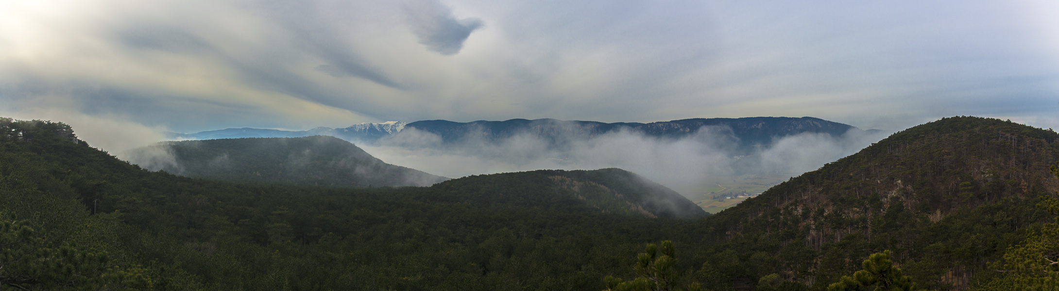 Panoramic view from the Engelsberg over Neue Welt to Schneeberg and Hohe Wand.
