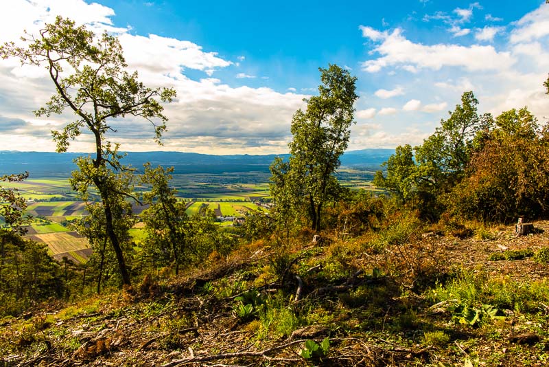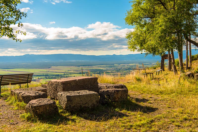 Panoramic view from the southwestern end of the Engelsberg, close to the steep escarpment. Click here or into the picture for a larger display.