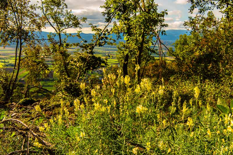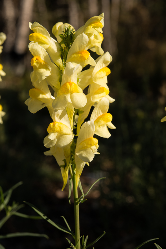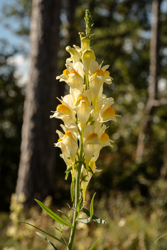 The large aisles the forest harvester has cut last winter are now overgrown with plants - prominent the Common toadflax (Linaria vulgaris), which is flowrishing now (again?).