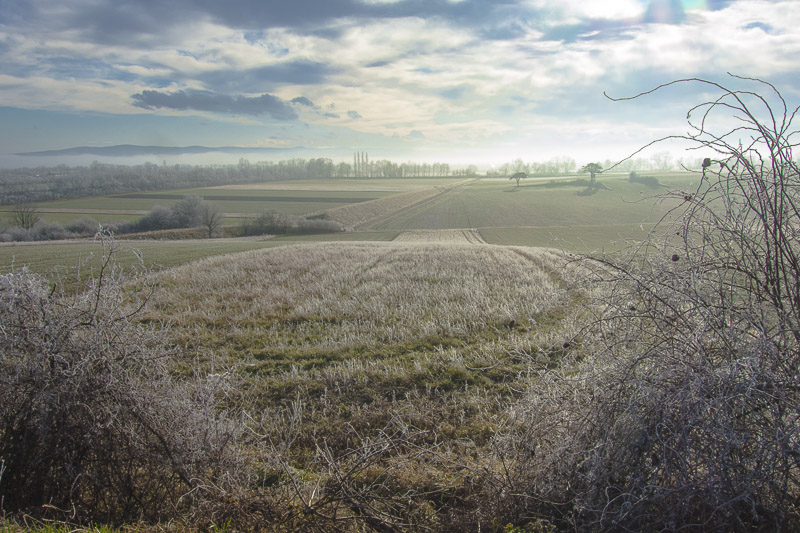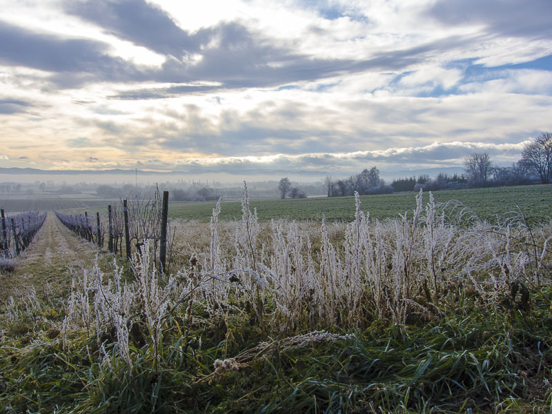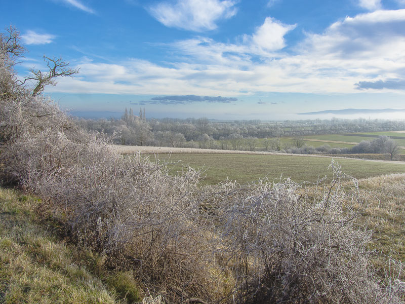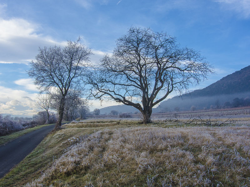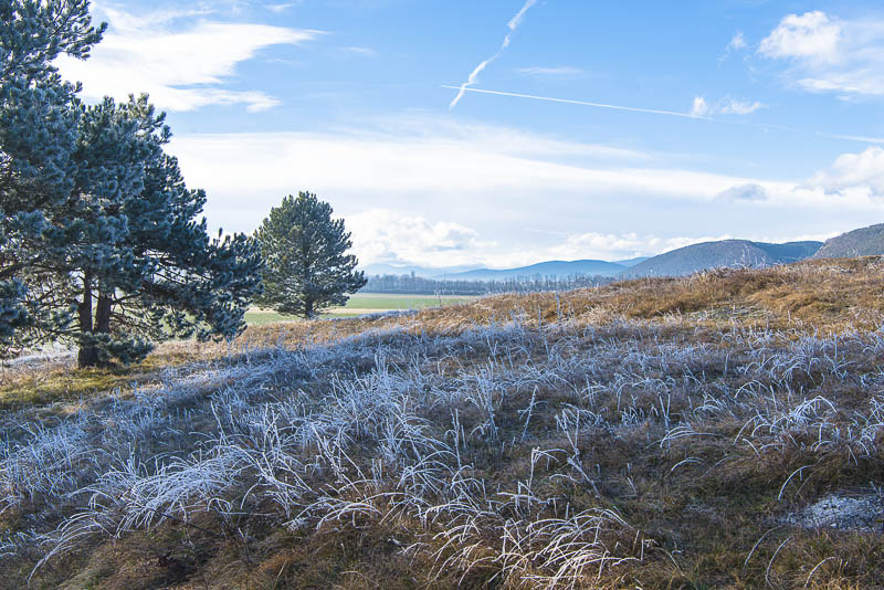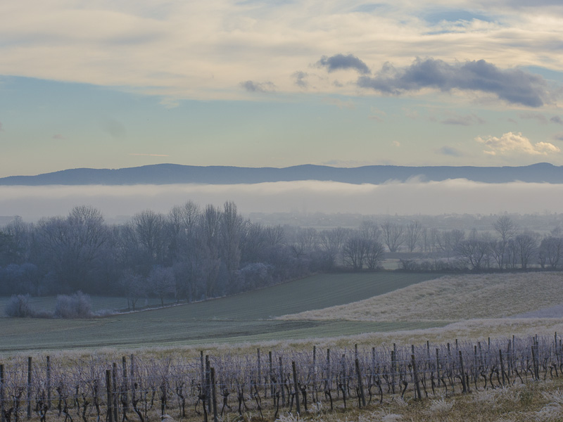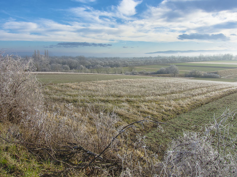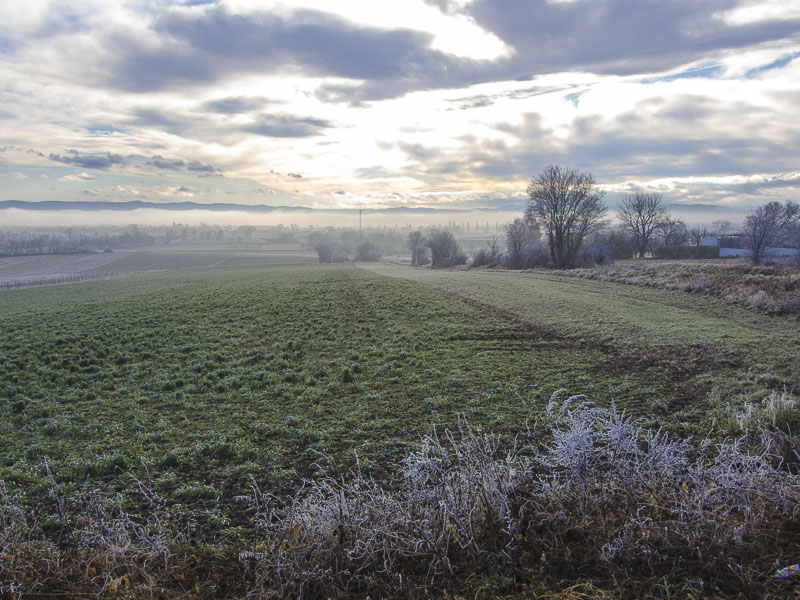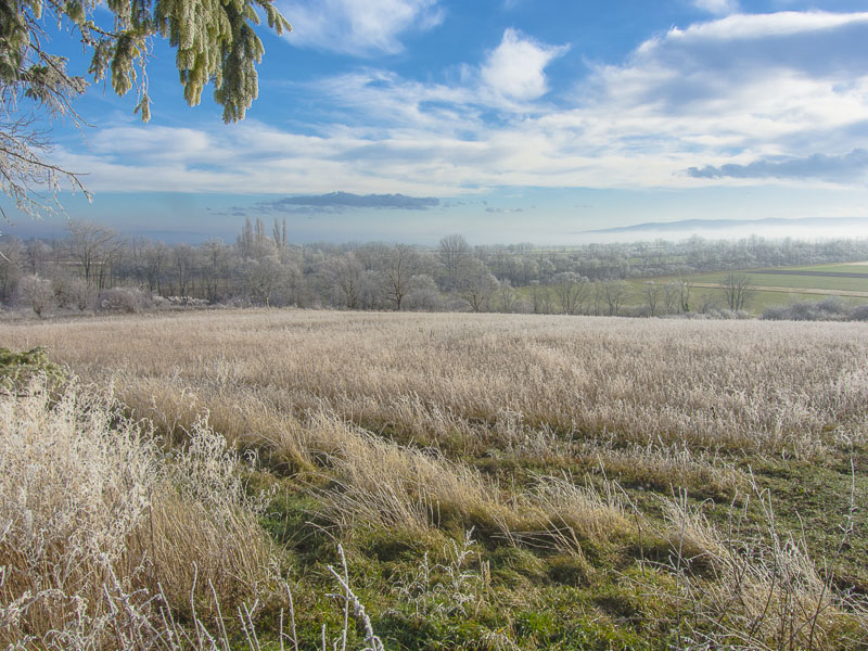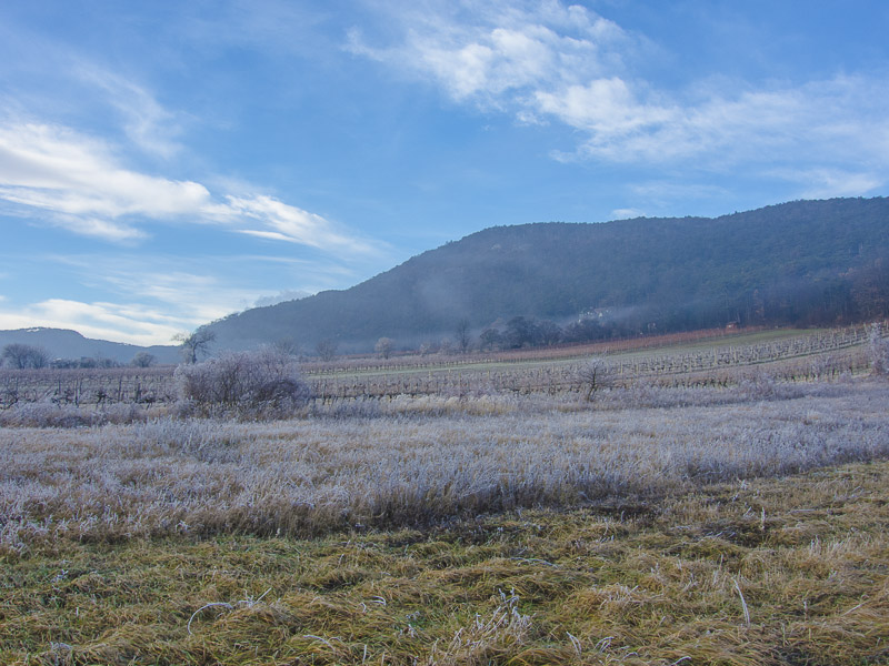 Up the mountains, the hoarfrost has already completely dissolved - this means, that down here, the mist has protected the ice from thawing for just a time.