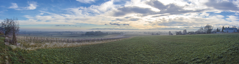 Panoramic picture form the outskirts of Winzendorf to the Rosalia mountains. Click here or into the picture for a larger display.