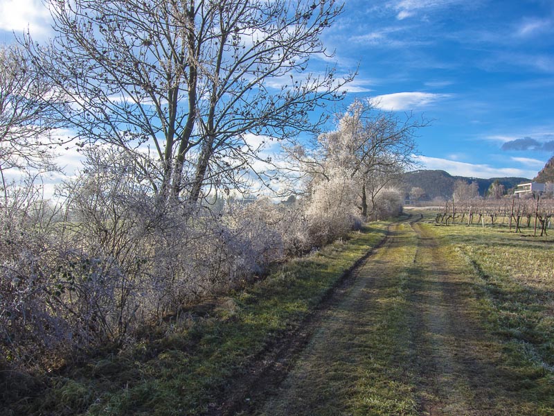 You get the impression, that there is more hoarfrost in Bad Fischau in the Northeast. No wonder, as the warm wind is just starting from the South.
