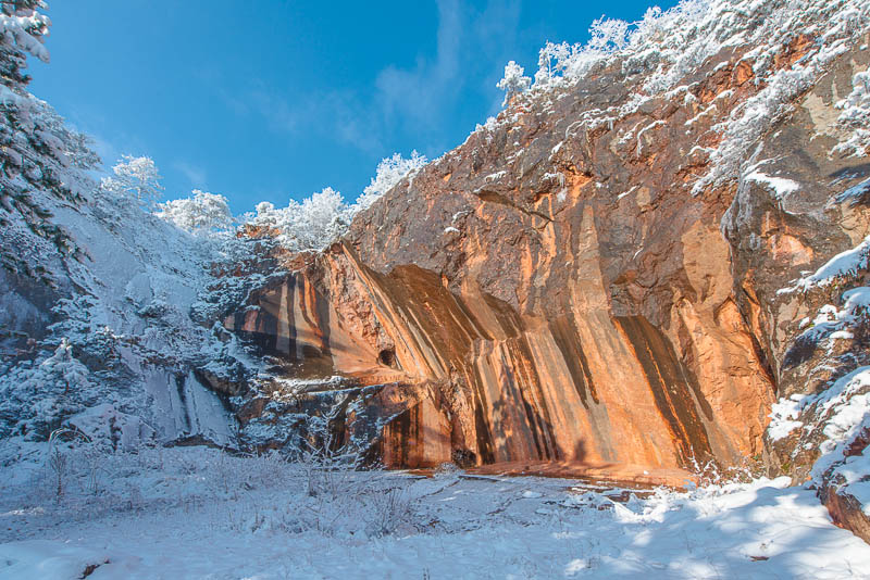 Hier biege ich jetzt zum Marmorsteinbruch ab, von dem man am Berg ganz links oben die schneebedeckte Schutthalde erkennen kann.
