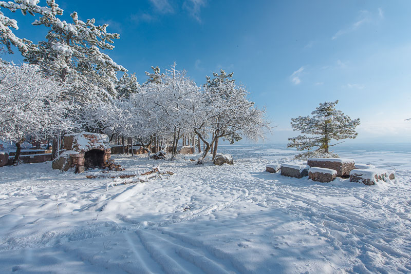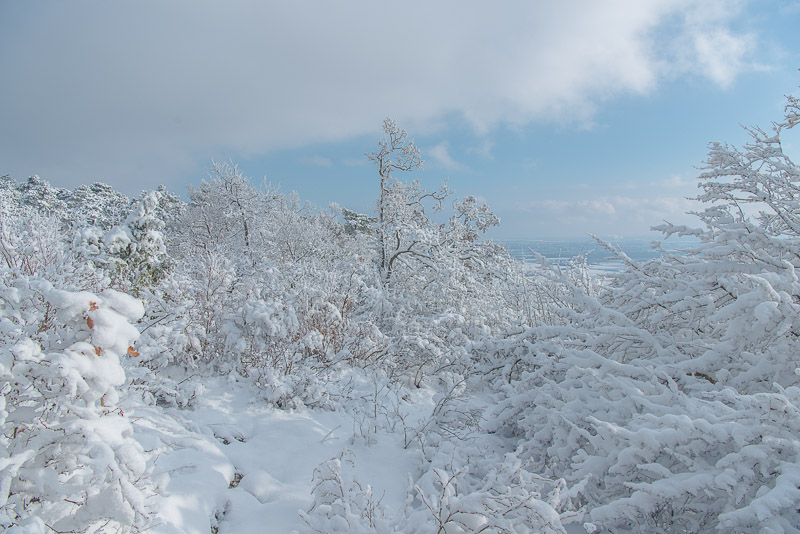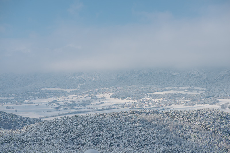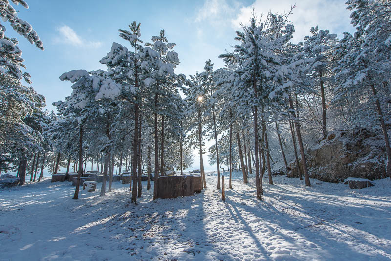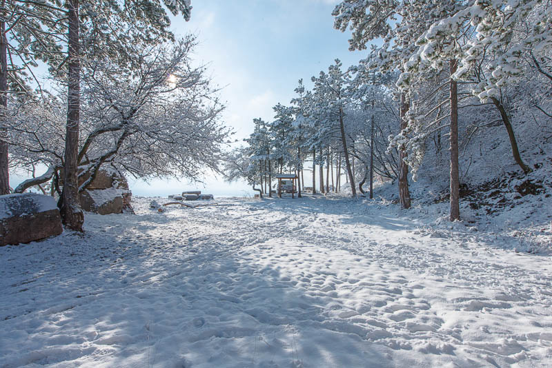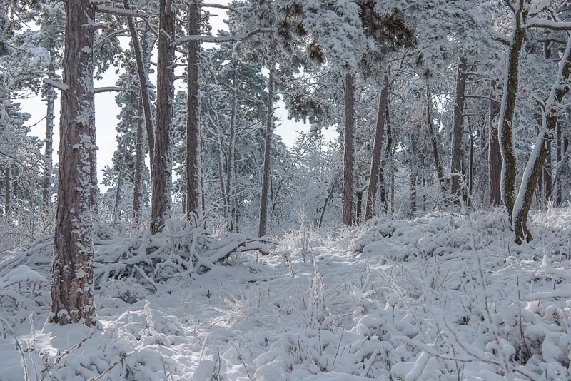 Besonders die freien Flächen sind komplett von Schnee bedeckt, ...