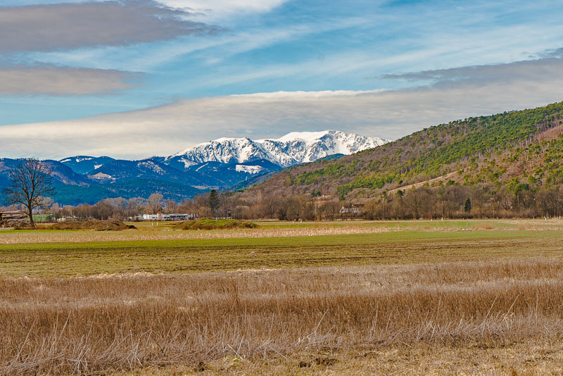 Blick vom Engelsberg zum Schneeberg und zur Hohen Wand.