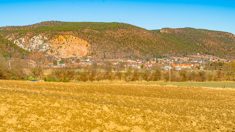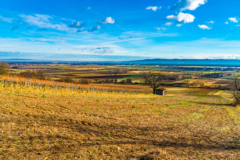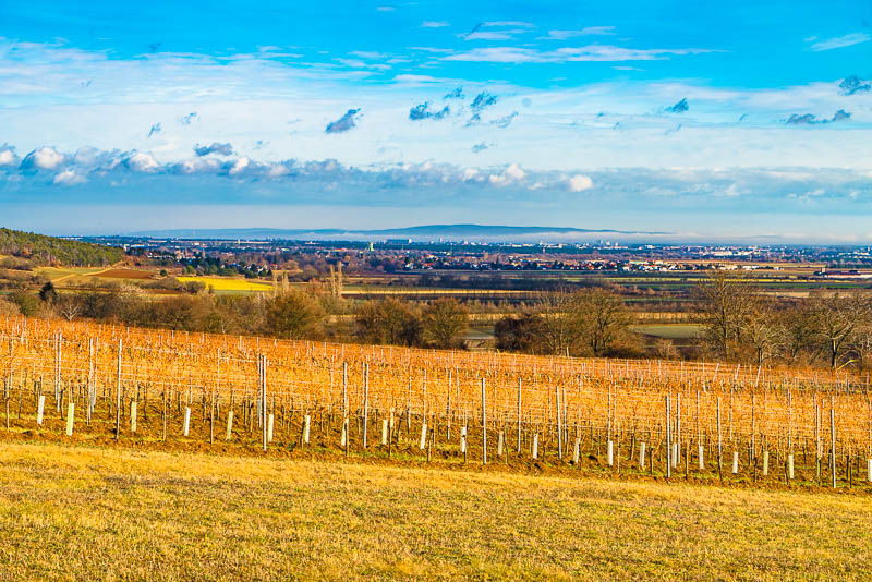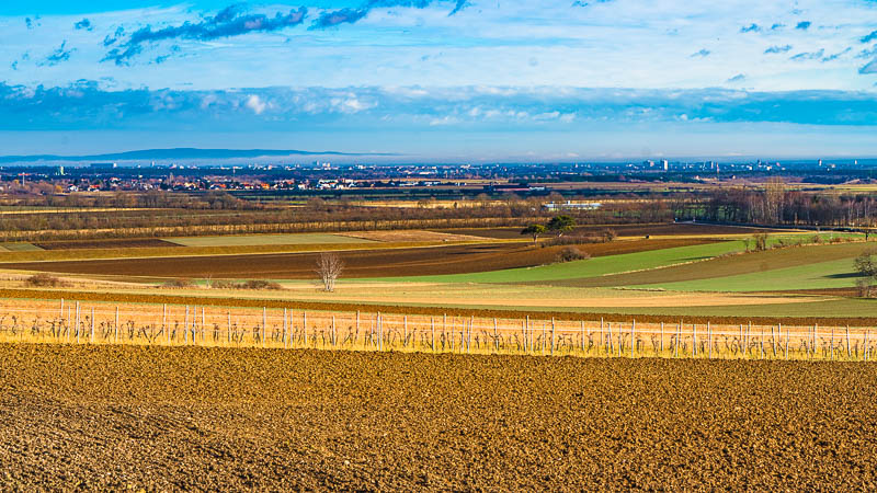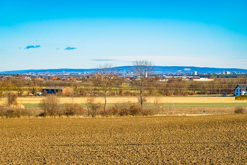 Bei mildem und trockenem Winterwetter auf den Engelsberg und zum Marmorsteinbruch sowie über die Felder Richtung Saubersdorf.