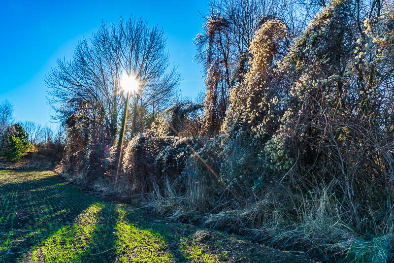 31.12. Bei fast wolkenlosem Himmel und ungewöhnlich milden 17 Grad Wanderung über die Felder Richtung Saubersdorf.