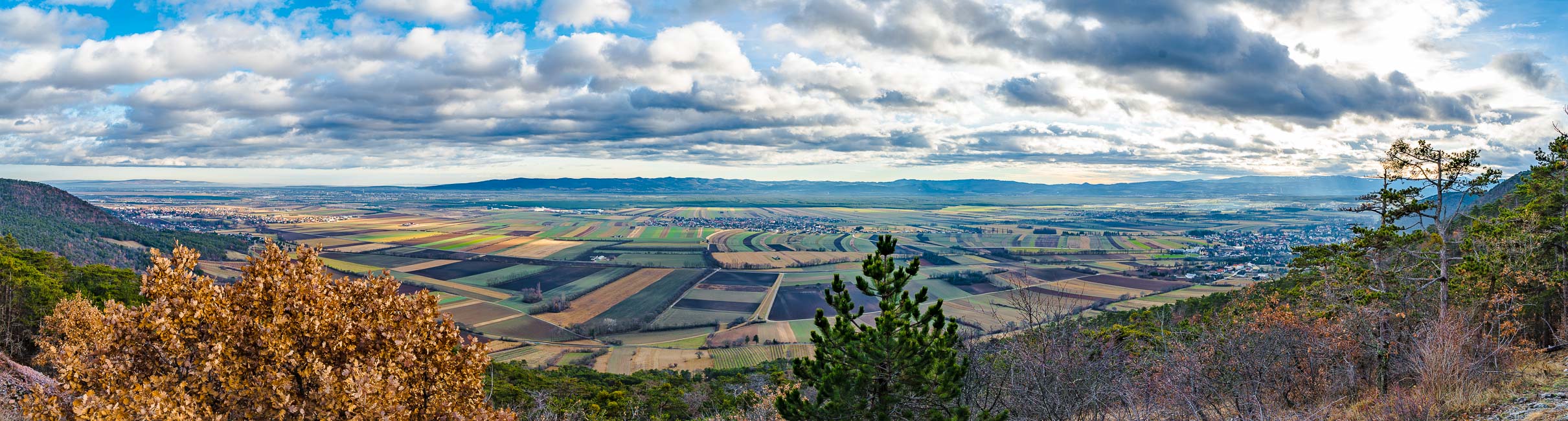 Blick vom Marmorsteinbruch über das Steinfeld zur Rosalia, ganz rechts Winzendorf.