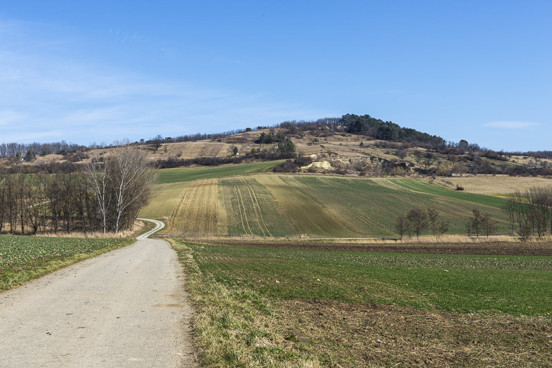 On the road to the hill. The botanically interesting part is the region around the summit.