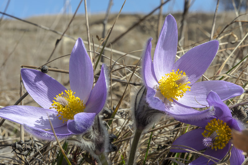 On the sunny southern slopes I can find the first exemplas of Pasque flowers (Pulsatilla vulgaris)