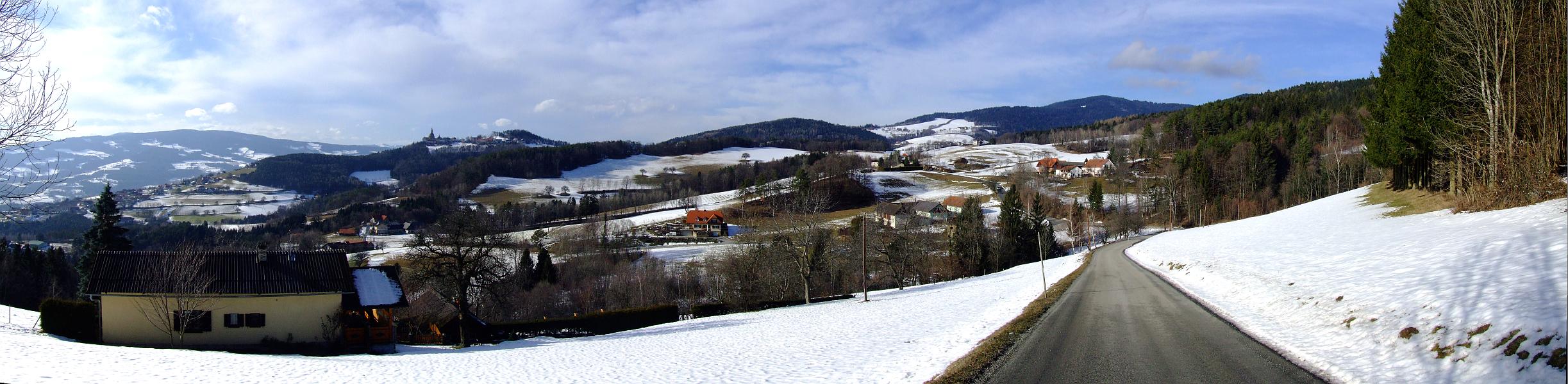 Shortly before the last reascent to the car, a view back to Poellauberg.