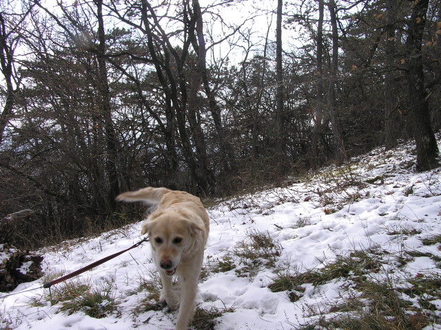 Short morning walk to Mitterberg (540 m) near Winzendorf (Fischauer Vorberge). Temperature about 0 C, small amounts of new snow after last week´s thaw. On descent icy driveway with residual old snow