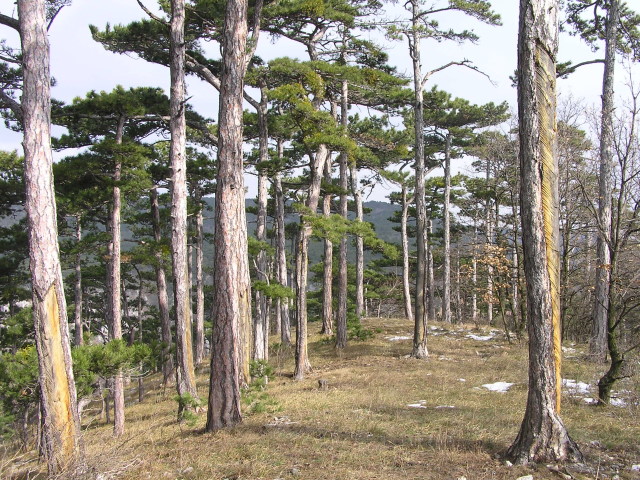 Light black pine forest on the wooden ridge to Mitterberg